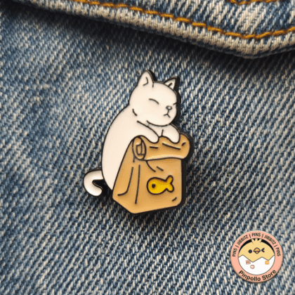 Gatito blanco con bolsa